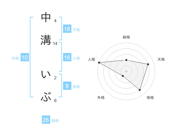 中溝 いぶさんの天格は18画の4点!