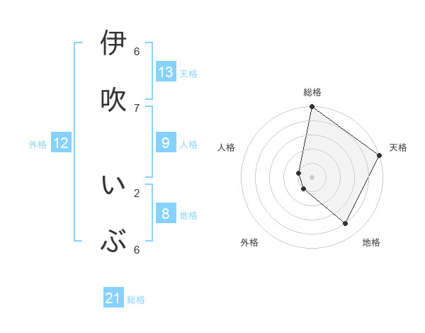 伊吹 いぶさんの天格は13画の5点!
