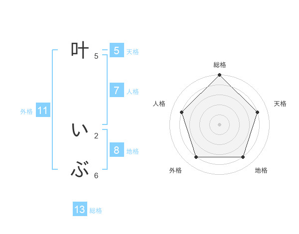 叶 いぶさんの総格は13画の5点!