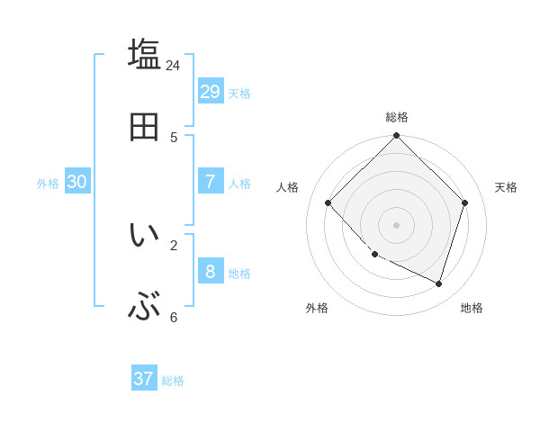 塩田 いぶさんを姓名の画数から五運を鑑定