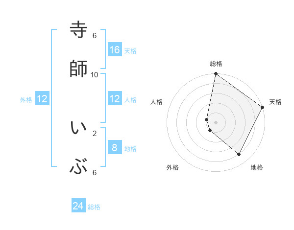 寺師 いぶさんの天格は16画の5点!