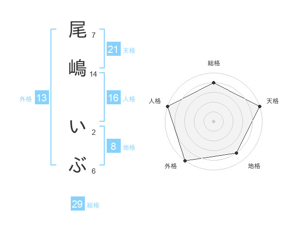 尾嶋 いぶさんを姓名の画数から五運を鑑定