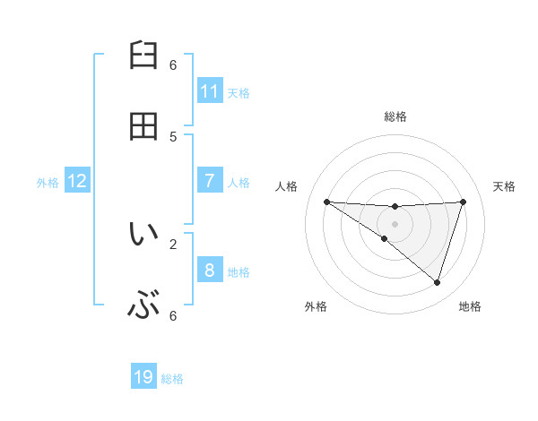臼田 いぶさんの天格は11画の4点!