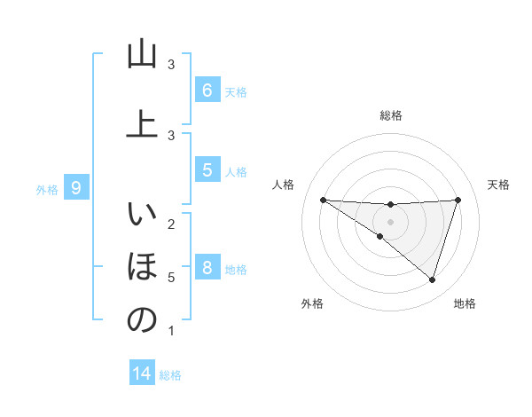 山上 いほのさんの総格は14画の1点!