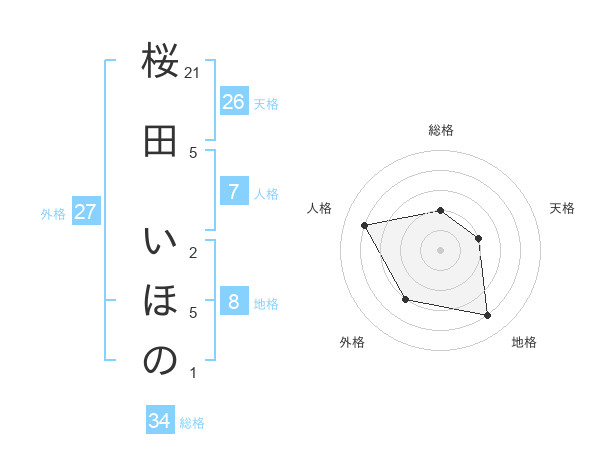桜田 いほのさんを姓名の画数から五運を鑑定