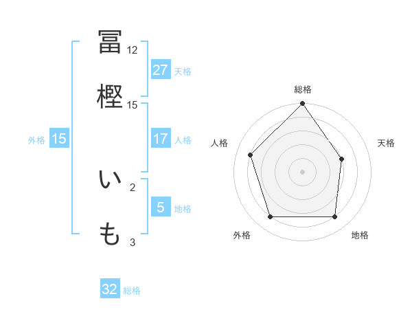冨樫 いもさんの総格は32画の5点!