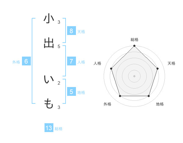 小出 いもさんの総格は13画の5点!