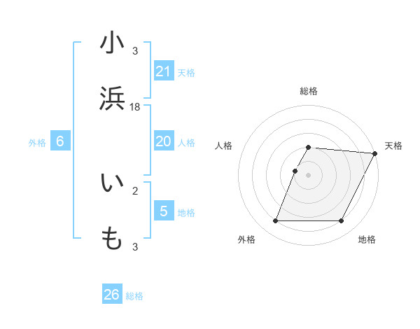 小浜 いもさんの総格は26画の2点!