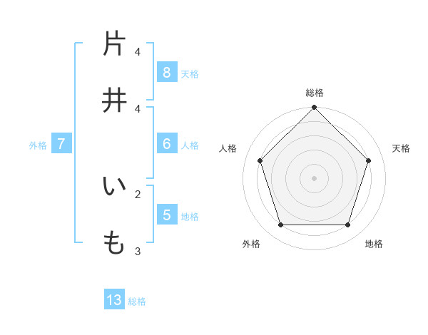 片井 いもさんの総格は13画の5点!