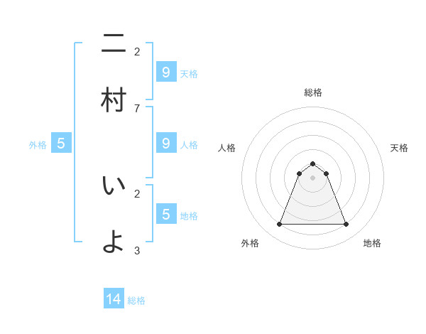二村 いよさんの総格は14画の1点!