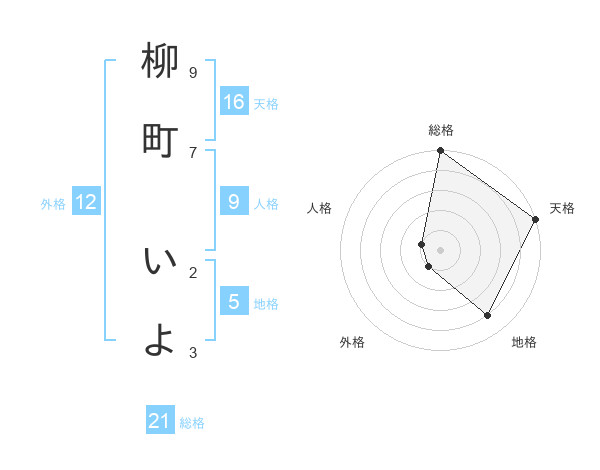 柳町 いよさんの天格は16画の5点!