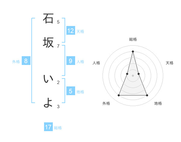 石坂 いよさんの総格は17画の4点!