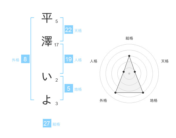 平澤 いよさんの総格は27画の3点!