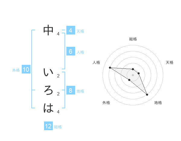 中 いろはさんの総格は12画の1点!