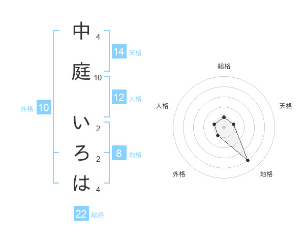 中庭 いろはさんの総格は22画の1点!