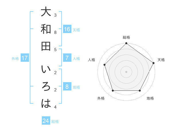 大和田 いろはさんの総格は24画の5点!