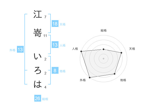 江嵜 いろはさんを姓名の画数から五運を鑑定