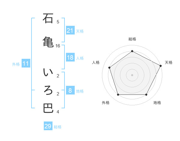 石亀 いろ巴さんの総格は29画の4点!