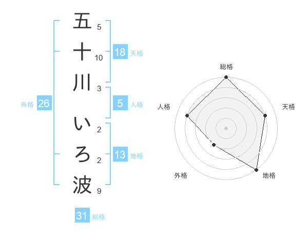 五十川 いろ波さんの総格は31画の5点!