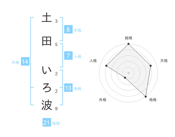 土田 いろ波さんを姓名の画数から五運を鑑定