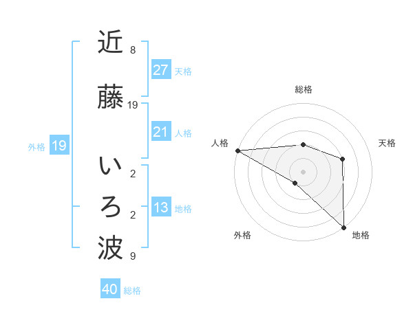 近藤 いろ波さんを姓名の画数から五運を鑑定