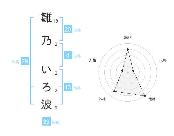 雛乃 いろ波さんの総格は33画の4点!