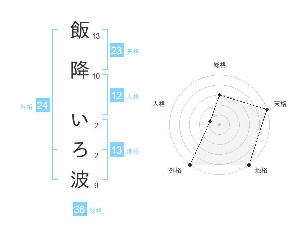 飯降 いろ波さんの地格は13画の5点!