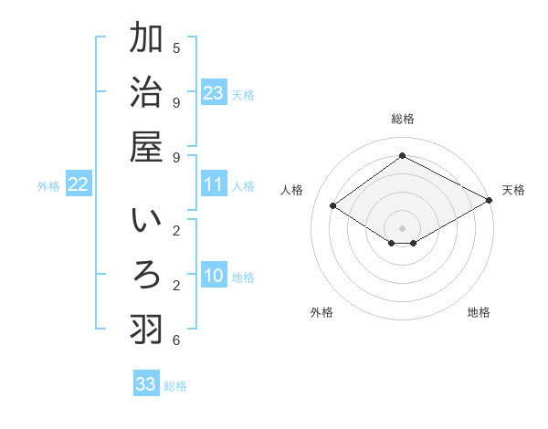 加治屋 いろ羽さんの天格は23画の5点!
