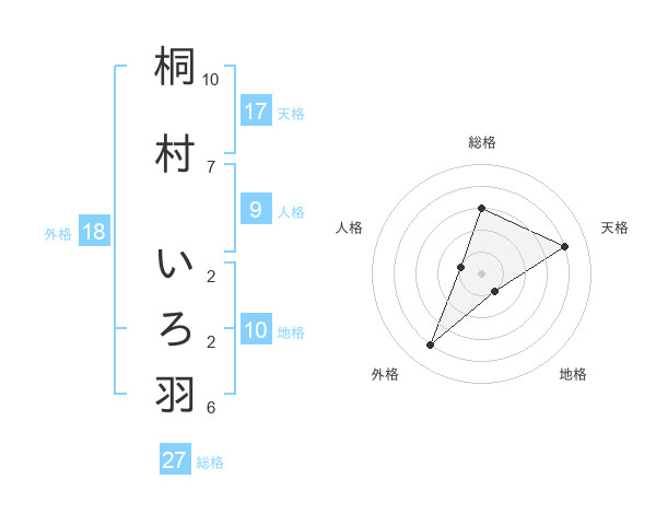 桐村 いろ羽さんの天格は17画の4点!