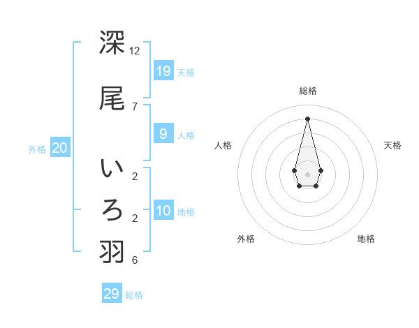 深尾 いろ羽さんの総格は29画の4点!
