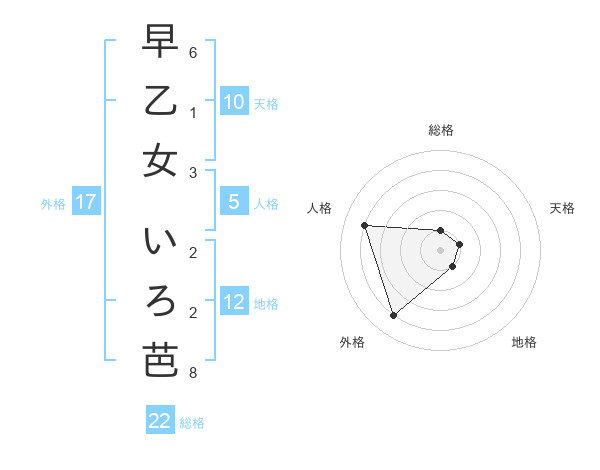 早乙女 いろ芭さんの総格は22画の1点!