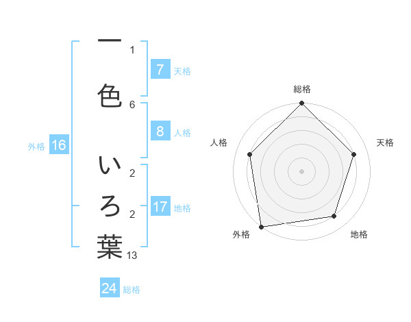 一色 いろ葉さんを姓名の画数から五運を鑑定