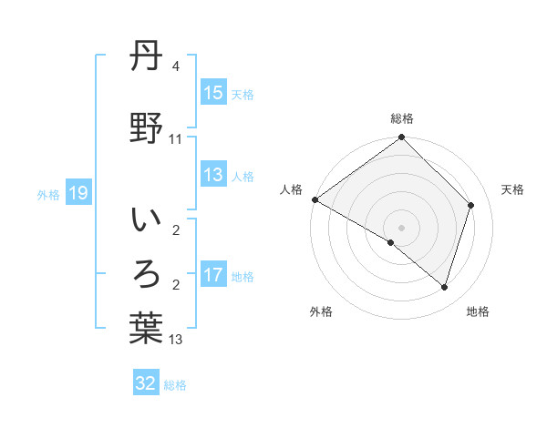 丹野 いろ葉さんを姓名の画数から五運を鑑定