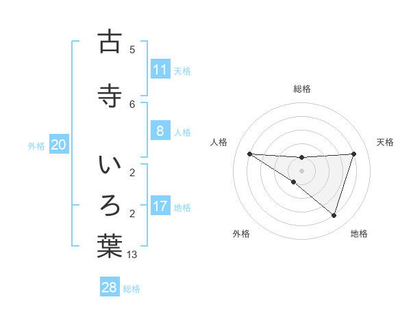 古寺 いろ葉さんを姓名の画数から五運を鑑定