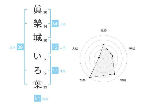 眞榮城 いろ葉さんの総格は51画の3点!