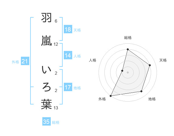 羽嵐 いろ葉さんを姓名の画数から五運を鑑定