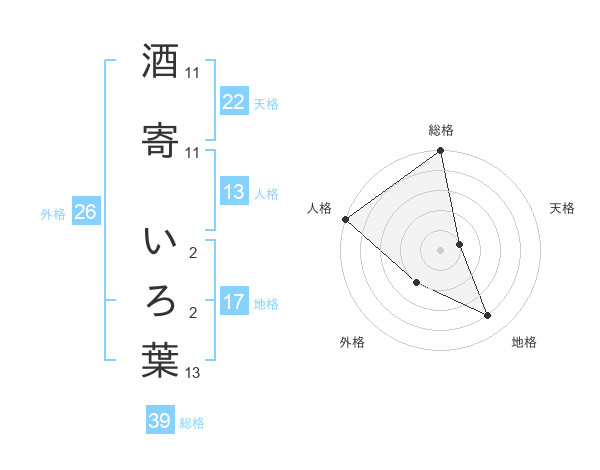 酒寄 いろ葉さんを姓名の画数から五運を鑑定