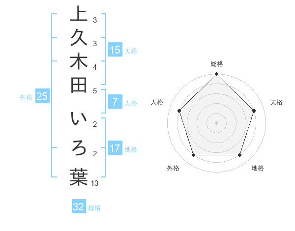 上久木田 いろ葉さんを姓名の画数から五運を鑑定