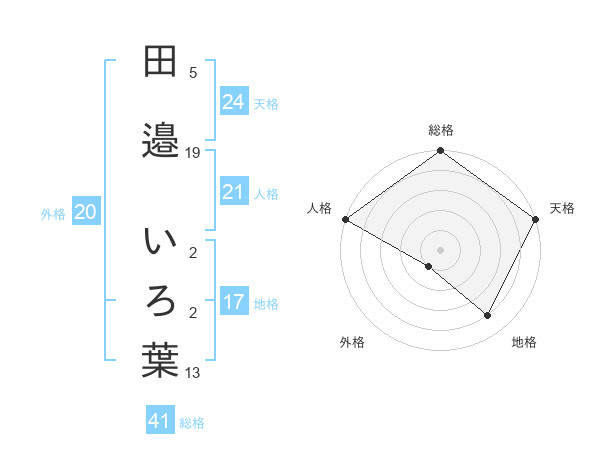 田邉 いろ葉さんを姓名の画数から五運を鑑定