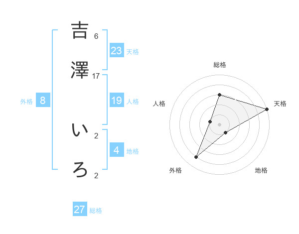 吉澤 いろさんの総格は27画の3点!