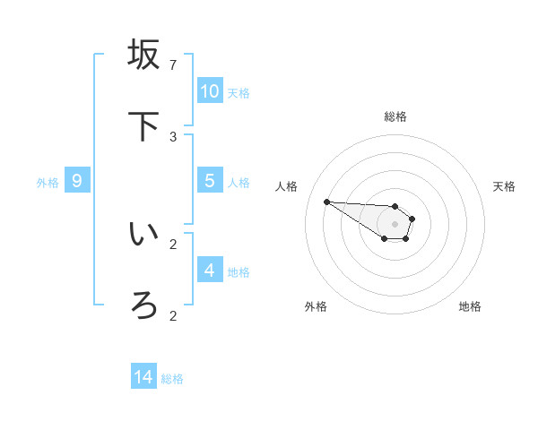 坂下 いろさんの総格は14画の1点!