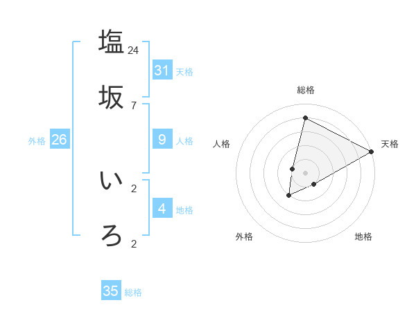 塩坂 いろさんを姓名の画数から五運を鑑定