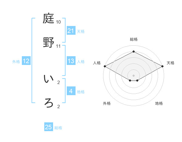 庭野 いろさんの総格は25画の4点!