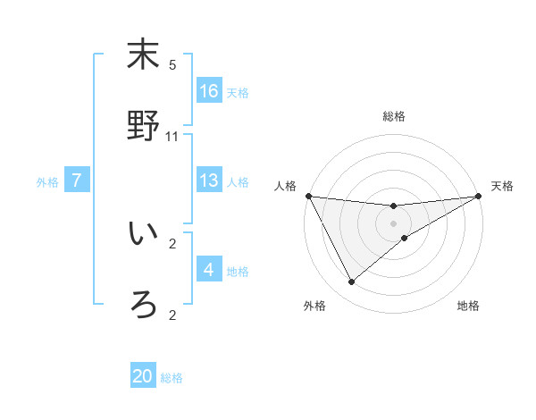 末野 いろさんの総格は20画の1点!