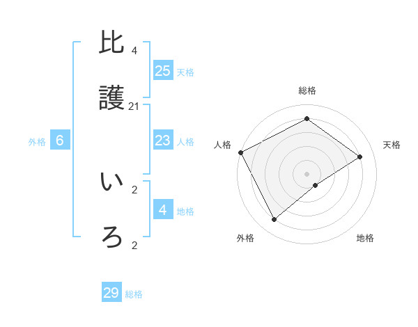 比護 いろさんの総格は29画の4点!