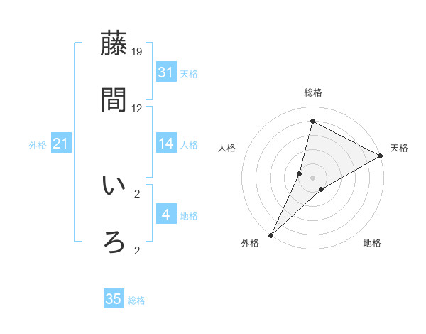 藤間 いろさんの総格は35画の4点!
