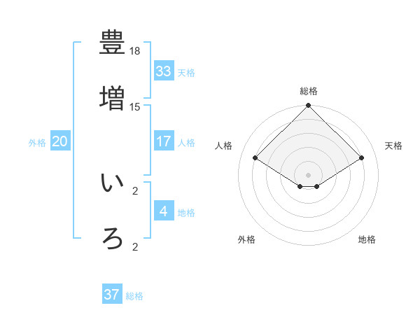 豊増 いろさんの総格は37画の5点!