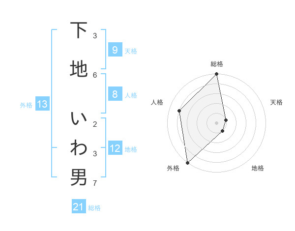 下地 いわ男さんを姓名の画数から五運を鑑定