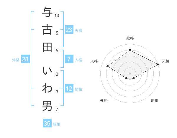 与古田 いわ男さんを姓名の画数から五運を鑑定