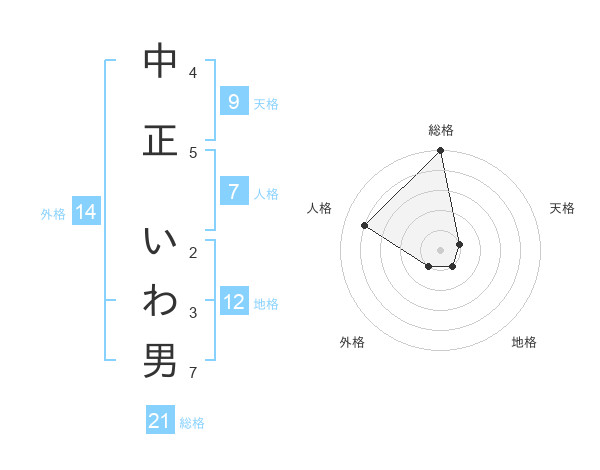 中正 いわ男さんを姓名の画数から五運を鑑定
